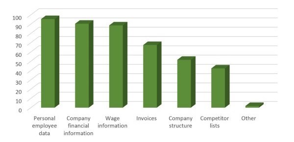 Financial data, in the form of company-wide information and employee wages, also ranked highly for sensitivity, at 90.4% and 88.6% respectively.