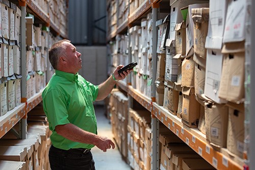 The archiving company stores your documents off-site, in a dedicated warehouse. They give each box or file its own barcode so you know which documents are in which box.
