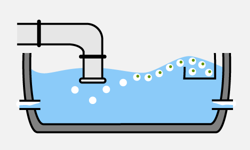 5. To remove the ink, the pulp is put into a chemical solution and blasted with air bubbles. The ink sticks to the air bubbles and rises to the top, where it’s skimmed off. Any colour particles are then removed from the pulp before it’s bleached to turn it white.